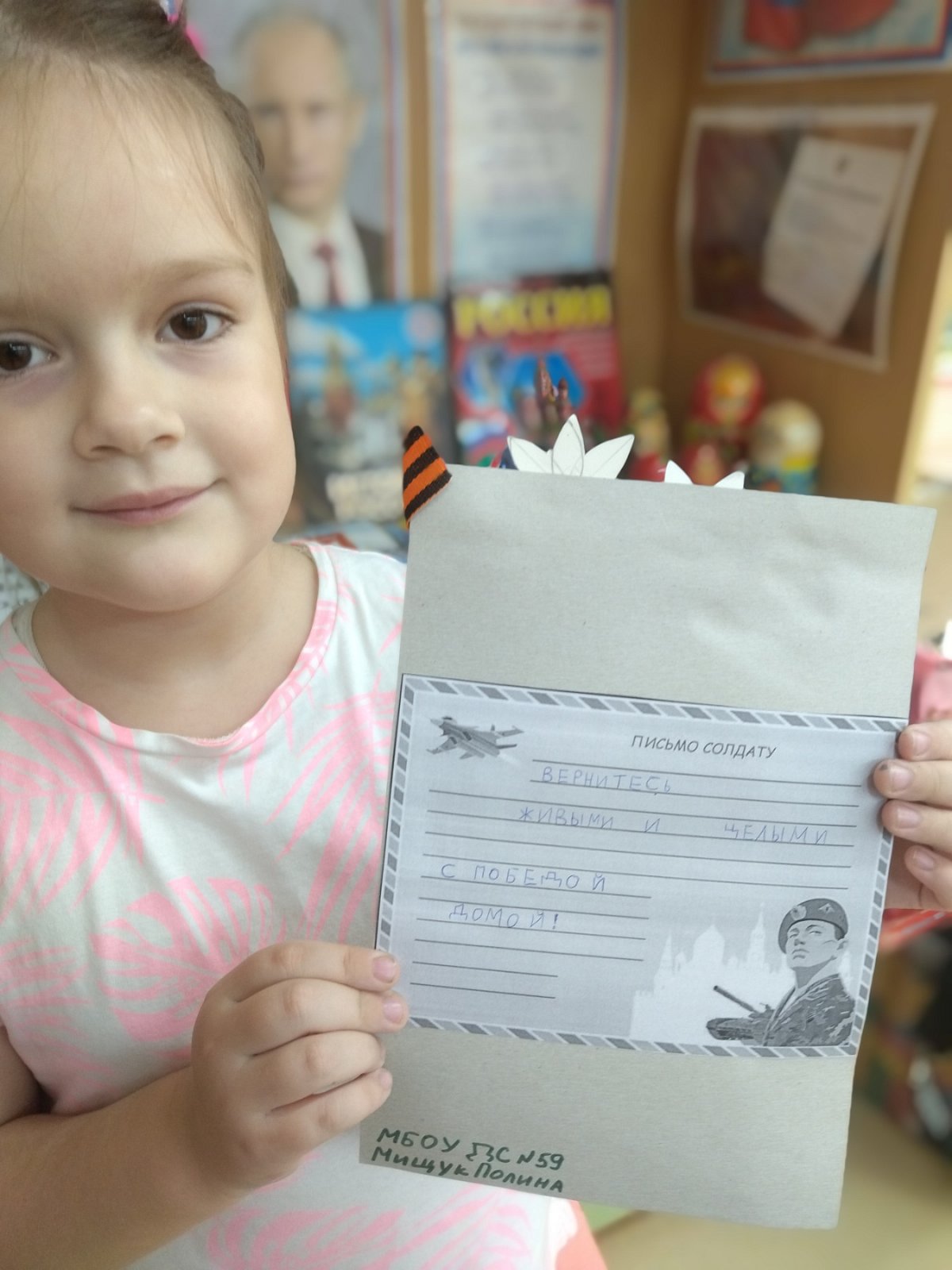 3 ОКТЯБРЯ 2022г., по всей России стартовала всероссийская акция "Письмо солдату". Суть этой акции - письма российским солдатам , которые выполняют свой военный и гражданский долг, принимая участие в специальной военной операции в Украине. Каждый человек, когда уезжает из родного дома, из теплого уютного уголка, ждет весточки с родной стороны, от тех кого они любят, и тех кто их ждет.