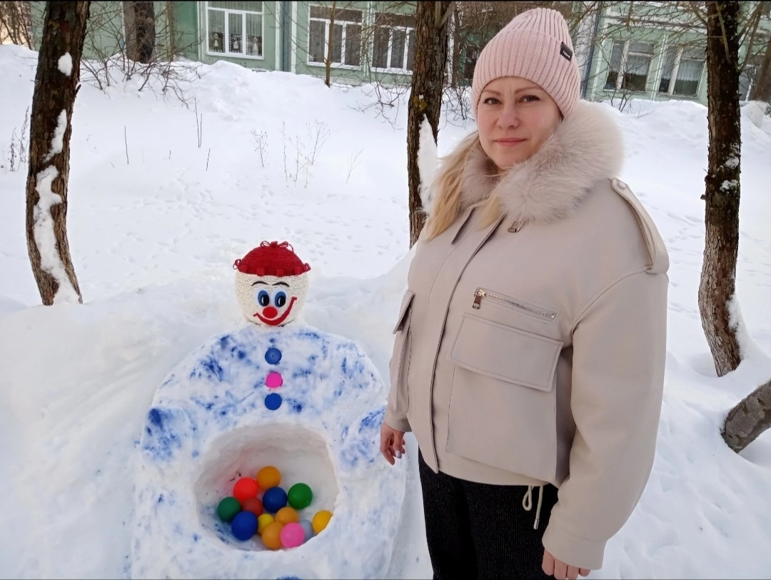 Поздравляем Елену Витальевну Тишкову с победой в городском смотре - конкурсе " Снежный бум " среди начинающих воспитателей. Елена Витальевна представила три работы : скульптура " Клоун - ловишка " , игра " Боулинг " , игра " Прыг - скок ". Эти игры направлены на развитие меткости , двигательной активности детей дошкольного возраста.